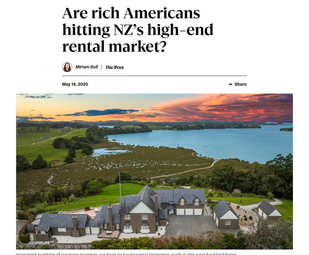 An Impact PR campaign has generated national media coverage across RNZ, Newstalk ZB, the Dominion Post, Christchurch Press, Waikato Times and more, after highlighting a surge in ultra-luxury home rentals driven by demand from wealthy foreign investors.